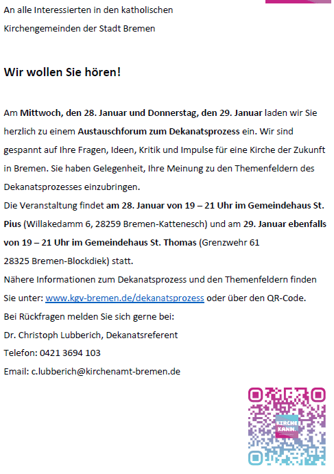 Bistum Osnabrück und Bremer Katholiken verständigen sich auf “Kontrakt” zum Dekanatsprozess
