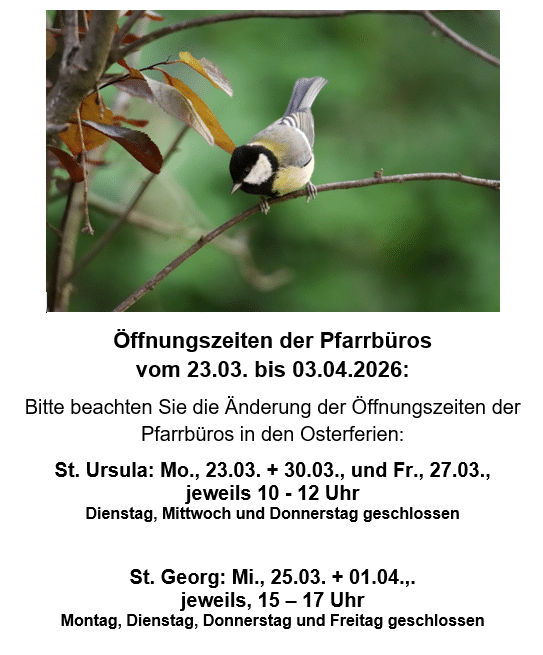 Die aktuellen Gottesdienstzeiten finden Sie im jeweiligen Katharina Aktuell (bei Aktuelles, siehe unten)