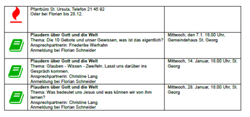 Adventstreffen in zwei Gruppen: 16. Dezember, Gemeindehaus St Ursula